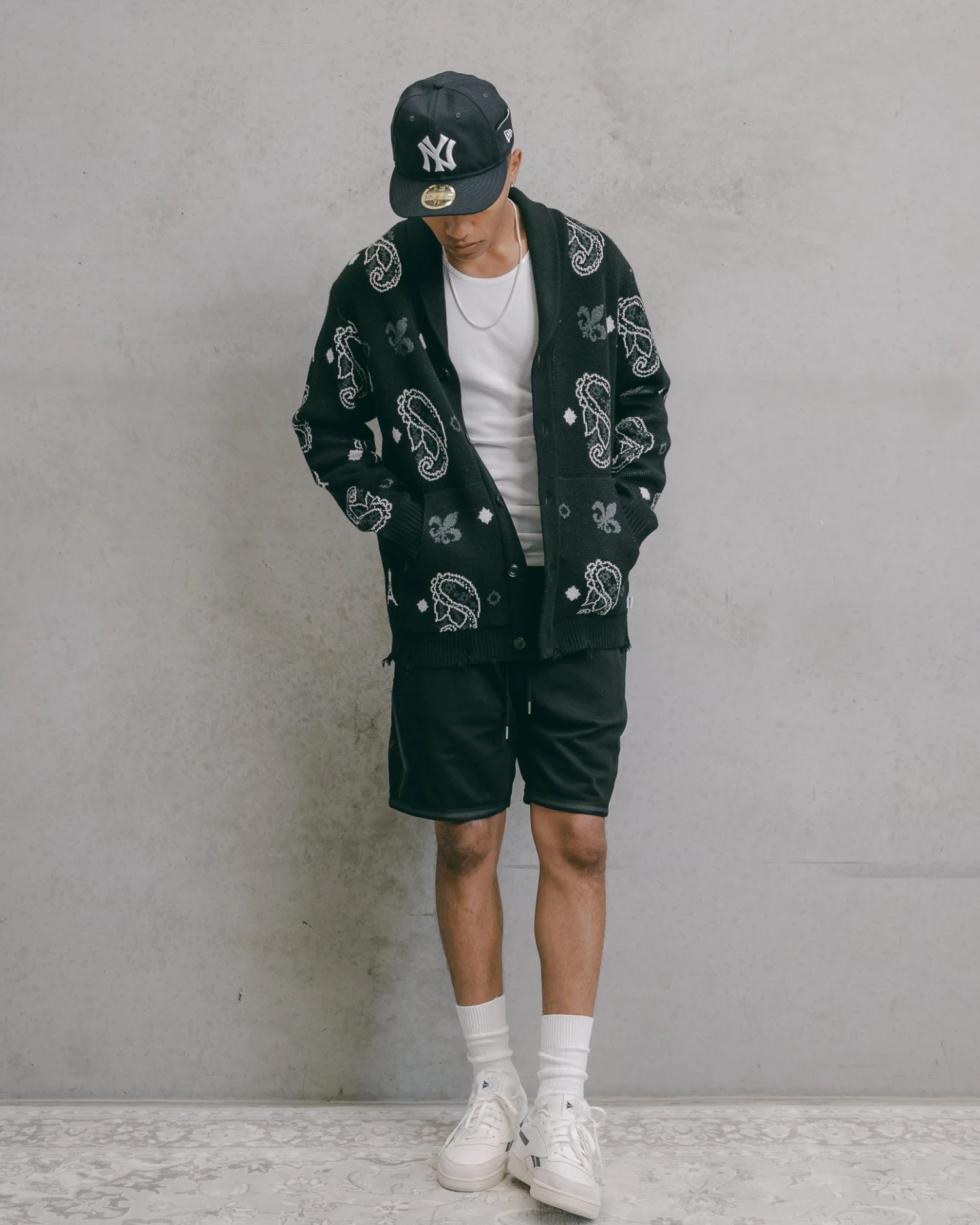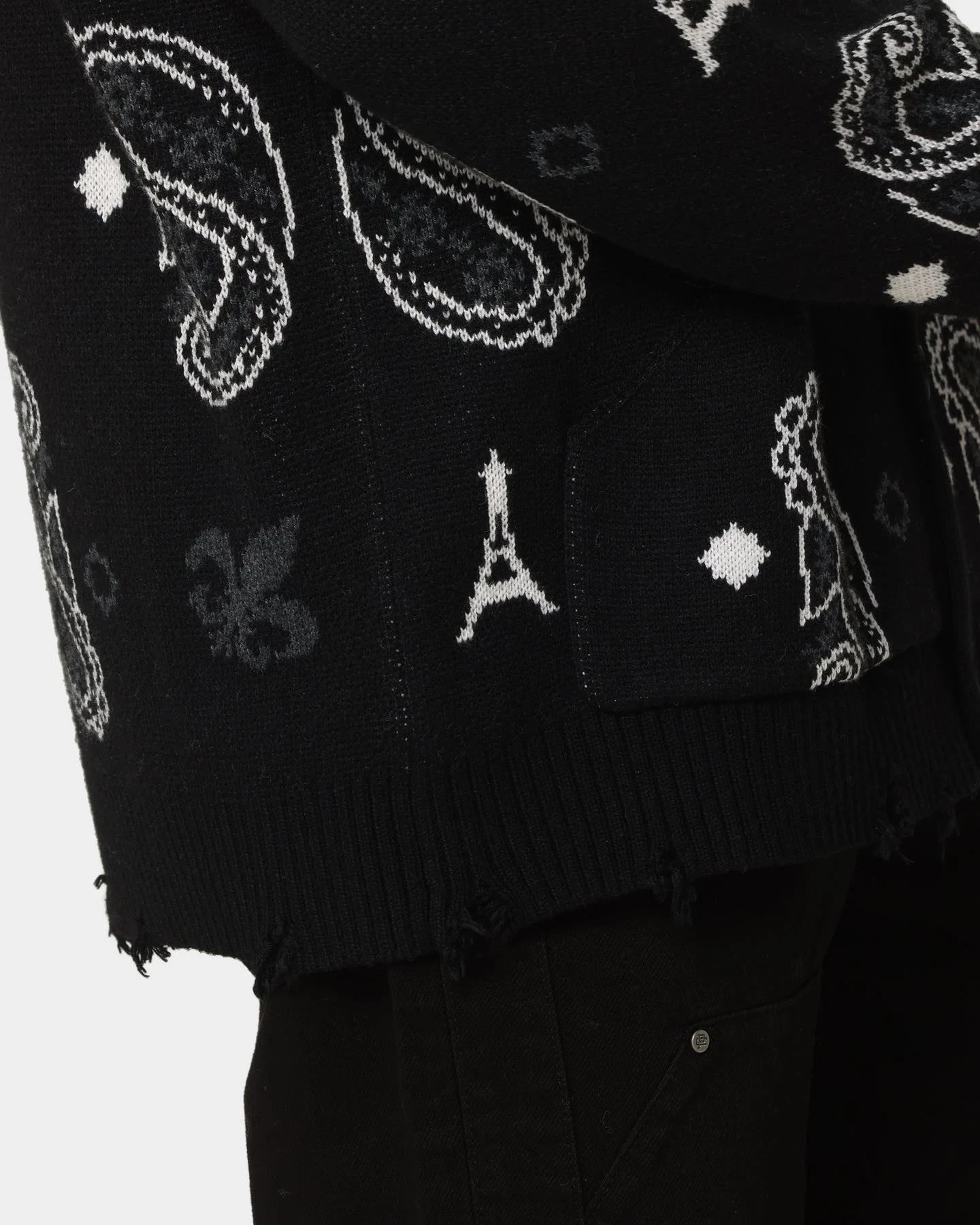 The Bandana Distressed Cardigan is the perfect cosy ‘fit for cooler weather. The knitted construction features raw distressing on the cuffs and hem, with a button up design and a classic bandana design to finish.