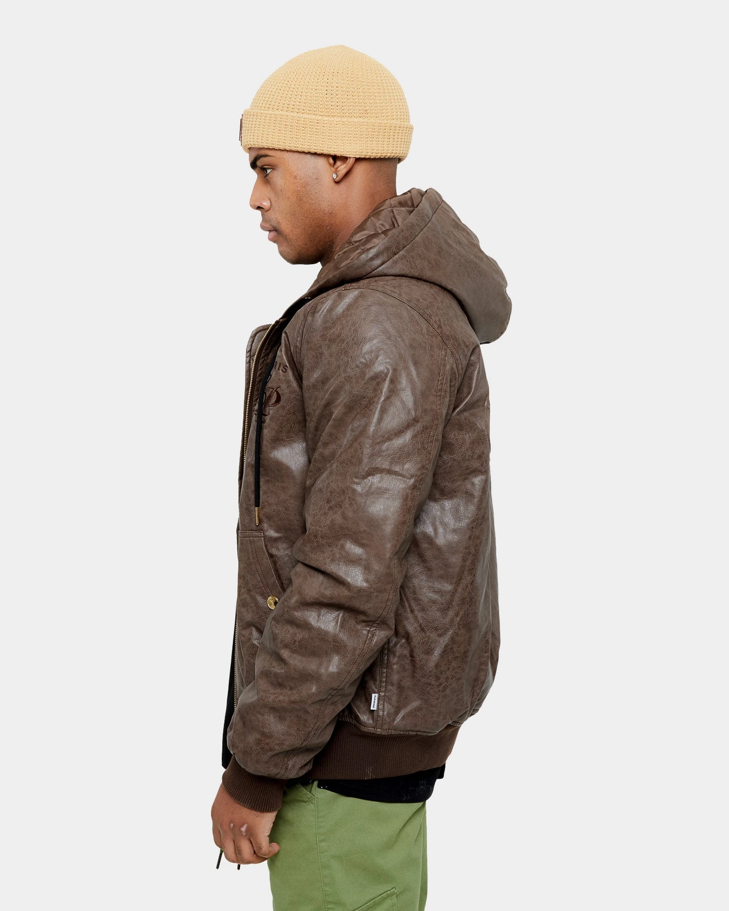 Don’t let your ‘fit fall short when the weather gets colder and make your stand in the Revolutionnaires PU Jacket. Featuring PU leather with a vintage finish, embossed and embroidered Carré logos, a quilted lining, and faux down filling.