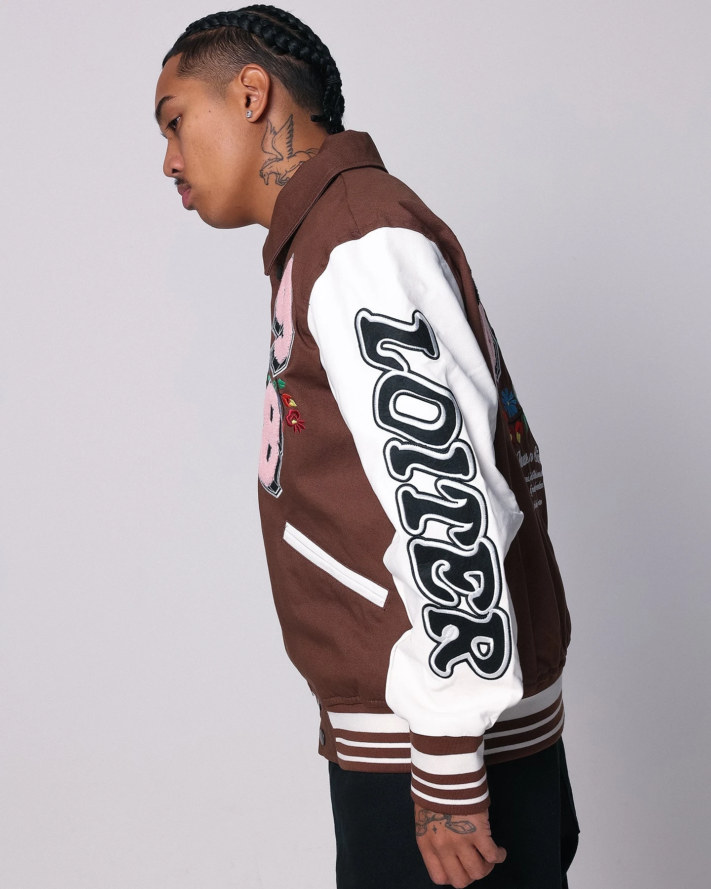 The Flaws Varsity Jacket stays true to that retro-style varsity jacket form. Featuring contrast PU leather sleeves and ribbed trims for added comfort. Premium chenille appliques all-over finish the look. When you’re layering up, you’ll want to grab this every time.