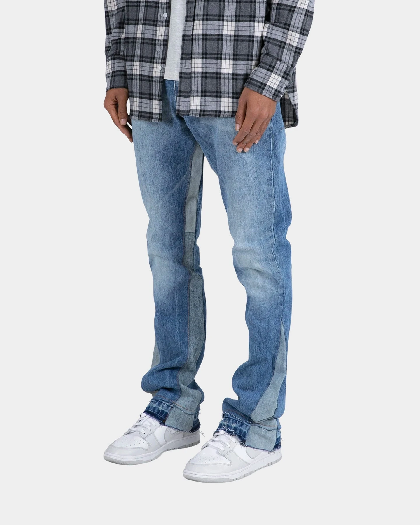 You know you’re in good hands when you get your denim from MNML. The B119 Flare Denim Jeans are a fresh take on the flared look with contrasting denim panels on the inseam and outseam. Distressed details and raw cut hems pair perfectly with the washed denim to create a vintage look and feel.