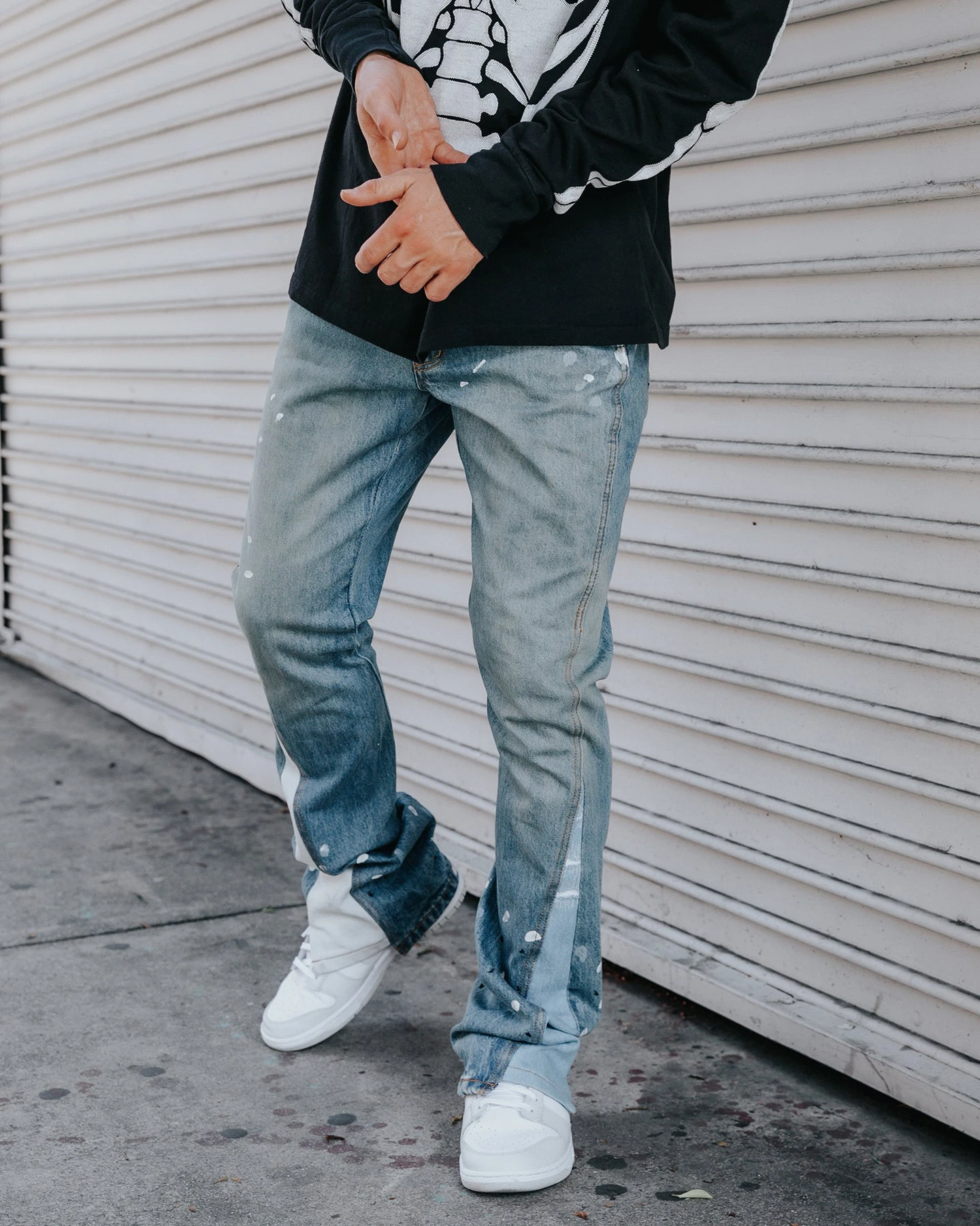 Step up your game with the B425 Patch Flare Denim Jeans and their unique design. From the patchwork panelling to create that signature flare fit to the paint splatter detail and the offset, asymmetrical cuffs, you won’t find another pair of jeans like these.