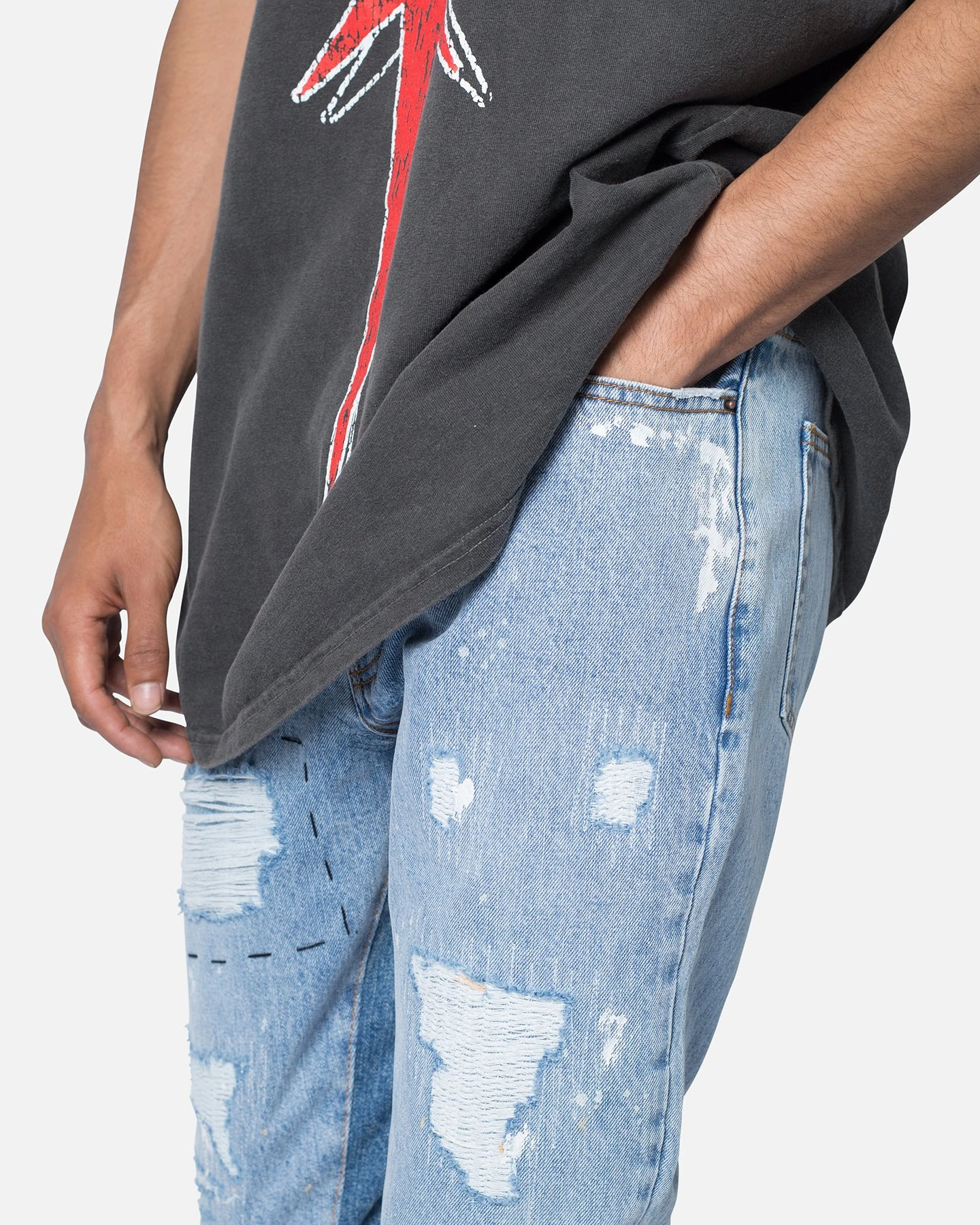 MNML is serving the hottest looks of the season and these jeans are straight fire. Featuring distressing throughout with a raw leg opening to give you the edge and panelling at the inseam and outseam for a standout look. These pants will keep you ahead of the rest, cop them today at Culture Kings.