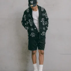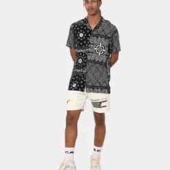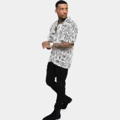 Saint Morta Paisley Skulls Short Sleeve Button Up Shirt White/Black