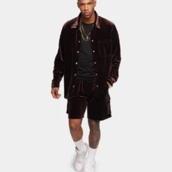 XXIII Uzair Velour Button Up Shirt Chocolate