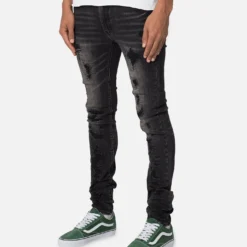 MNML Baggy Rave Cargo Denim Jeans Washed Black