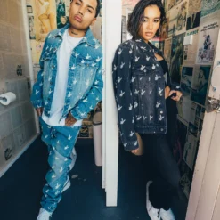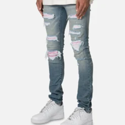 MNML X555 Crystal Skinny Denim Jeans Blue/Pink