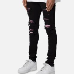MNML X555 Crystal Skinny Denim Jeans Black/Pink