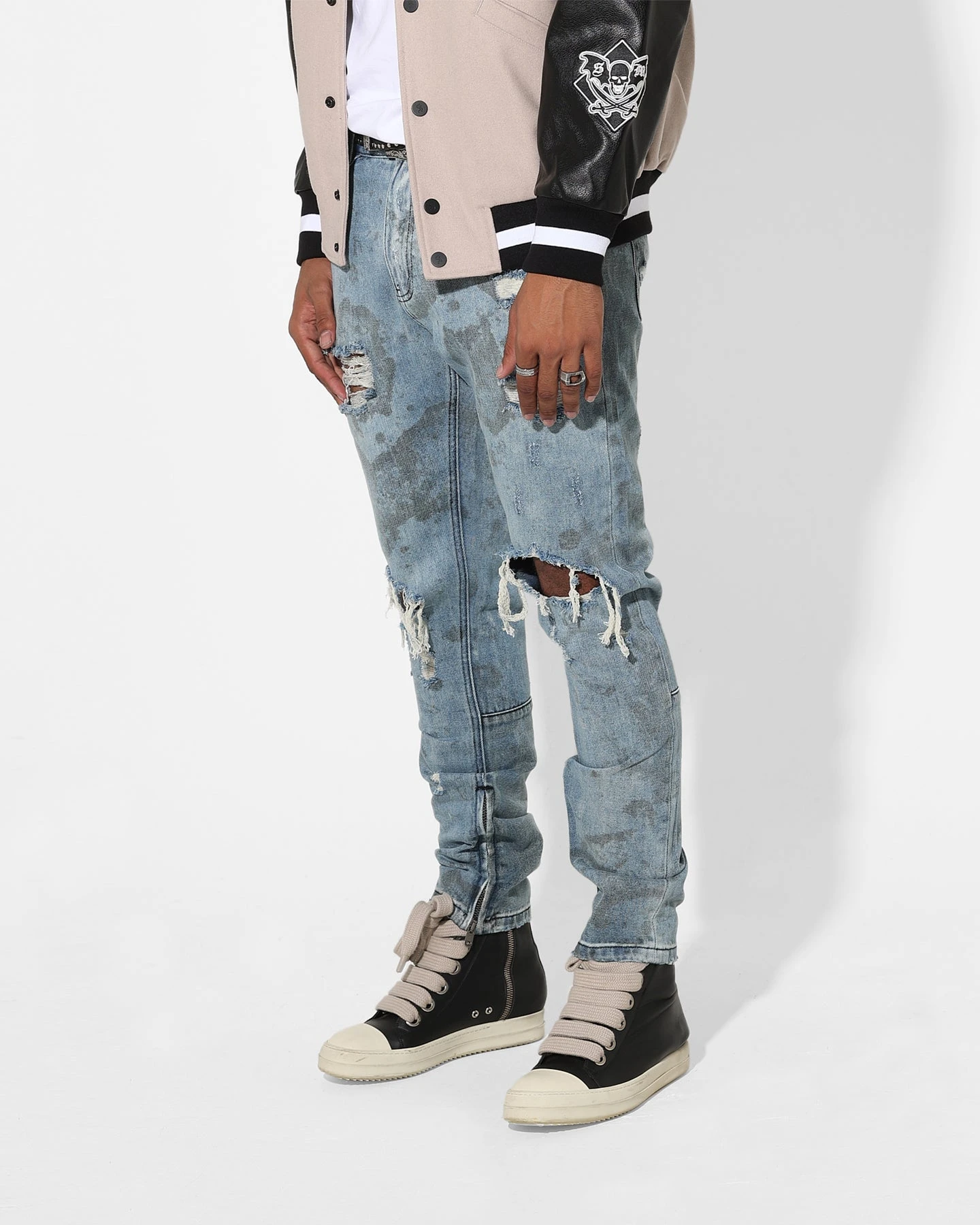 Make your statement in the Acid Destroyer Jeans from Saint Morta. Heavy rips and distressing pair with acid-washed fabric for a textured look. The slim leg can be adjusted with the zippered cuffs. Grab your pair today.