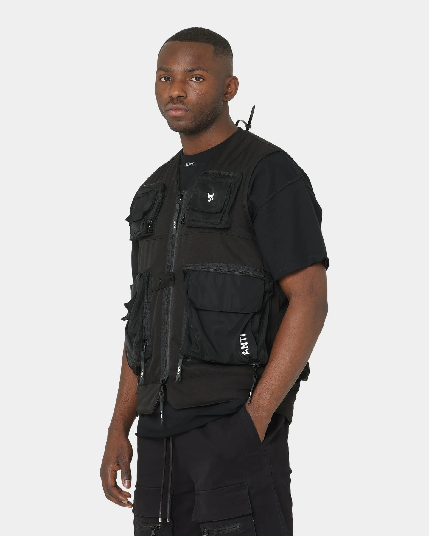 With eclectic and ageless garments you can wear to the end, The Anti-Order is the aesthetic of tomorrow. The Non-Military Vest features multiple cargo style pockets all over with custom zippers. This high-quality build also includes signature branding and gives off an androgynous, modern vibe.