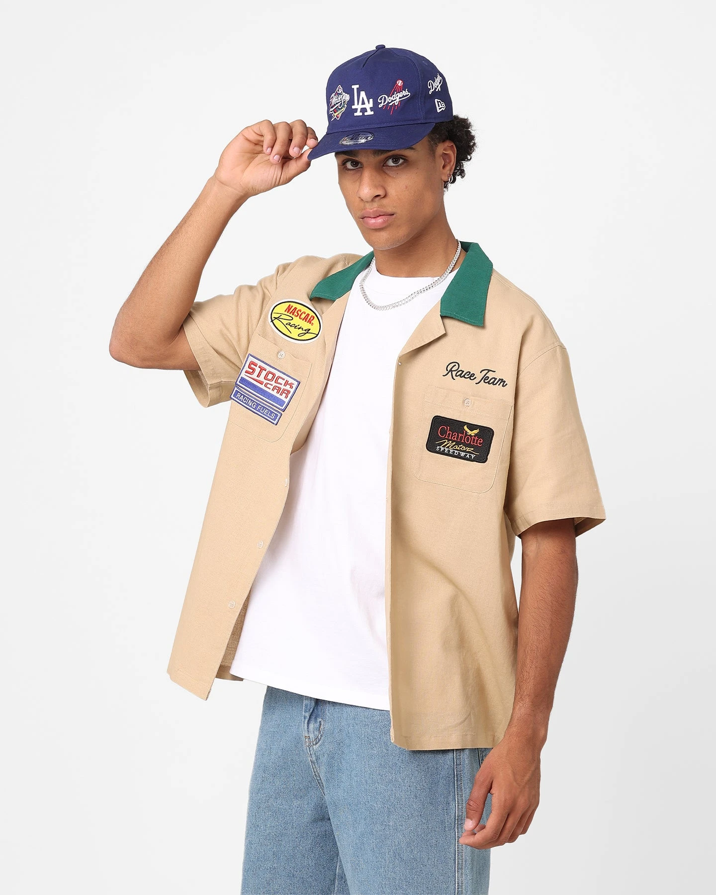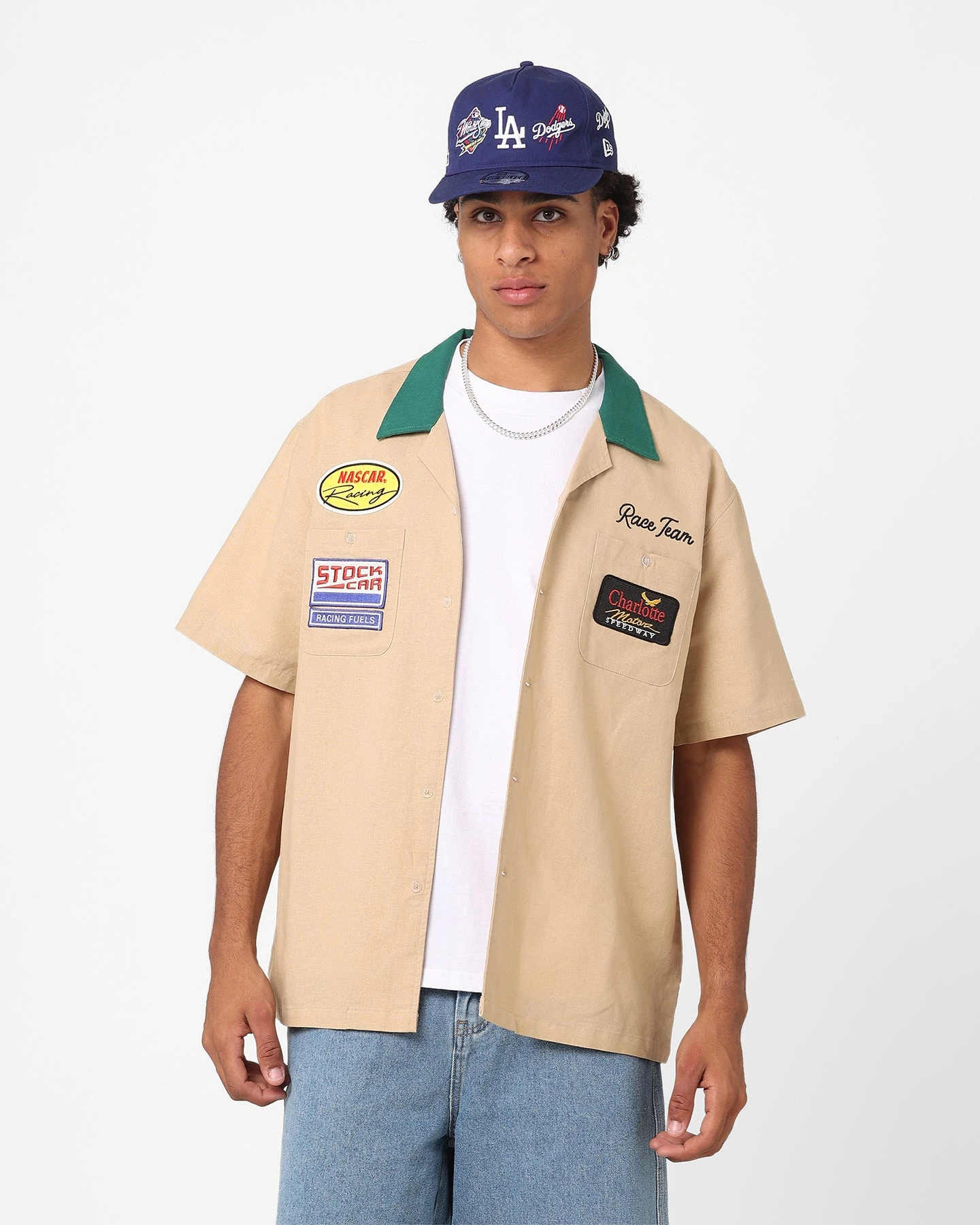Stay ahead of the game in the CMS Race Team Shirt by The New Establishment. This shirt is decked out in embroidered graphics for that retro mechanic vibe, with a full button close and contrast collar to finish it off. Cop yours today at Culture Kings.